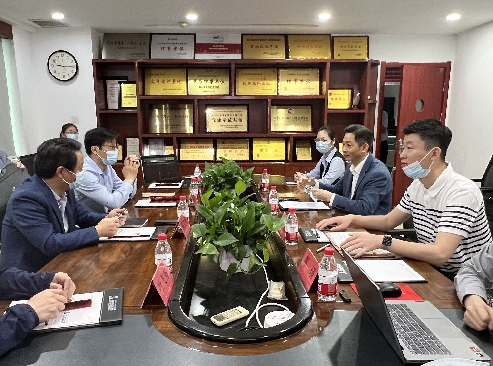 4月25日上午,武昌区政协党组副书记、副主席金建涛率领武昌区政协民宗委主任周文隽,水果湖街人大主任尚德朋以及武昌区政协民宗委台盟、台联、侨联委员组副组长、武昌区台联会会长叶飞舟莅临我司调研考察企业的发展情况。