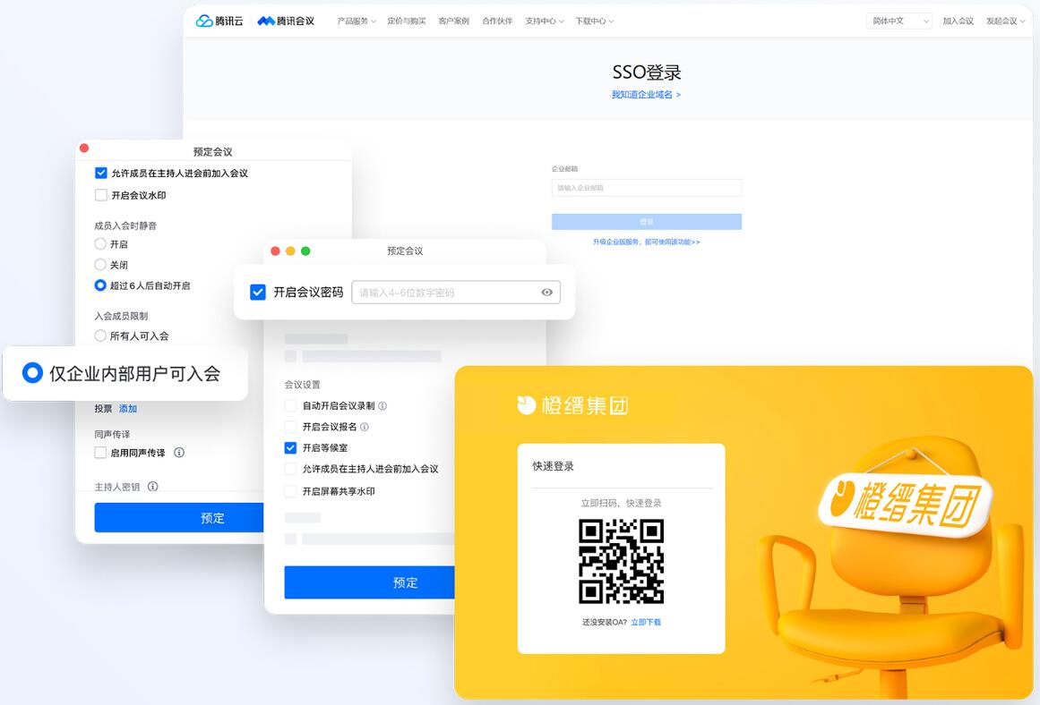 1、支持对接企业通讯录,企业微信扫码直接登录、SSO单点登录,仅企业内成员可入会,参会人员更可控。