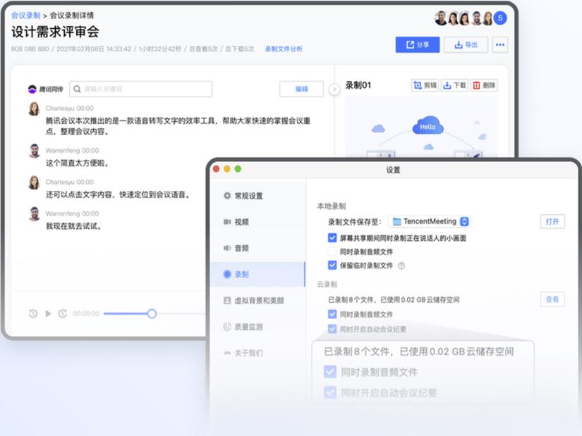 3、无限云上存储空间,会议历史信息永久留存,企业会商、合作谈判等重要会议全程录制,便捷留存。