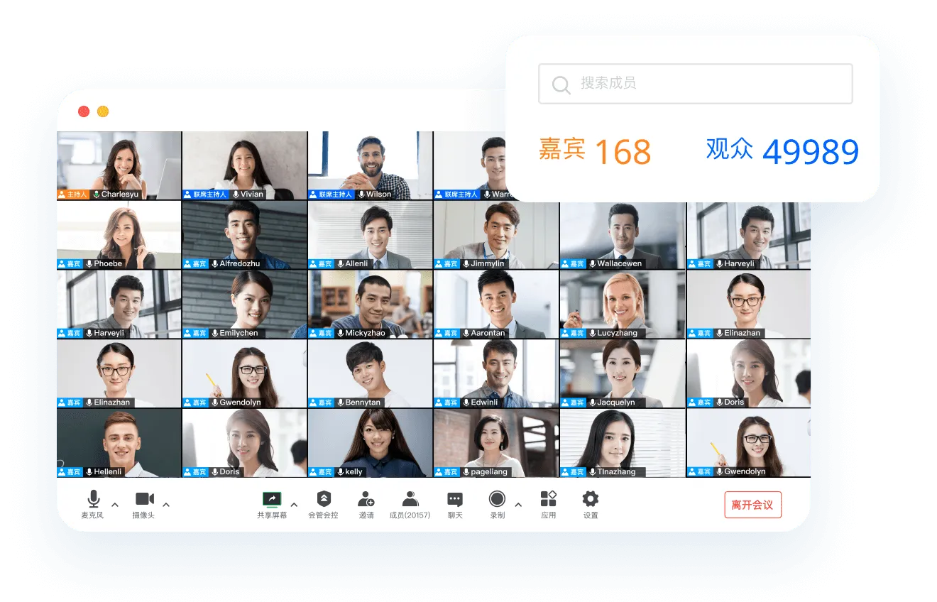超大型在线会议,低延时,强互动,易管控,轻松在线举办研讨会、培训会、发布会等大型会议