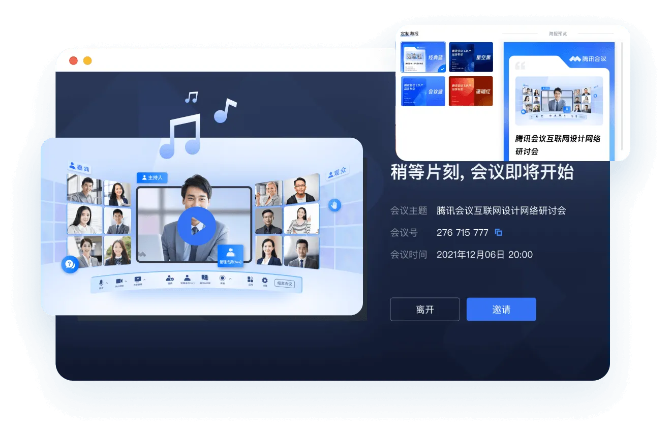 支持自定义会议介绍页并生成分享海报,提升品牌传播效率。会前暖场可设置品牌素材,增强品牌宣传。